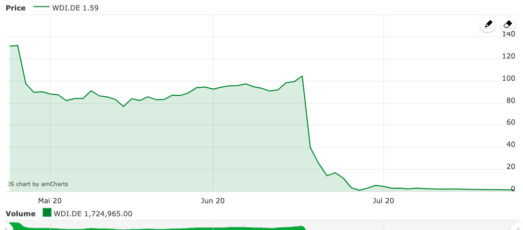 24.07.2020: Der Kurs der Wirecard Aktie ist mittlerweile auf knapp über 1,50 € gefallen. Das Handelsvolumen der Aktie beträgt nur noch rund ein Fünftel des 3-Monats-Durchschnitts.
