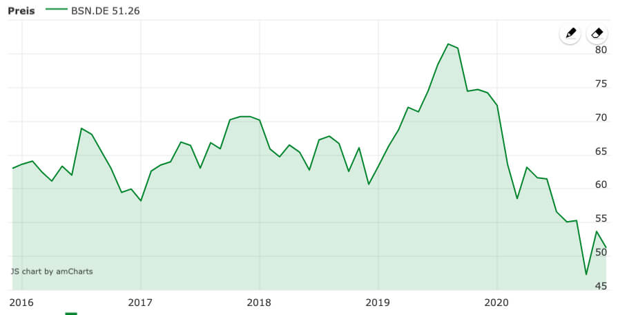 Wer an Danone denkt, der hat vermutlich in erster Linie Milchprodukte vor Augen. Tatsächlich erzielt der Konzern aus Frankreich aber den meisten Umsatz mit Wasser – ähnlich wie Nestlé und andere Nahrungsmittelkonzerne. Weil das Kerngeschäft mit Milchprodukten aber schwächelt und die Schließungen in der Gastronomie im Zuge der Covid19-Krise dem Geschäft von Danone stark zugesetzt haben, will sich der Konzern neu erfinden. Künftig werden höhere Margen und qualitativ noch hochwertigere Produkte ins Visier genommen.
